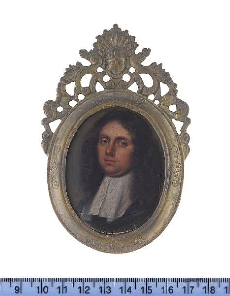A Gentleman, wearing black cloak and white jabot, his natural hair worn long and curled.
