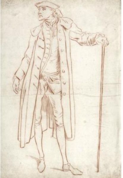 Homme en pied tenant une canne