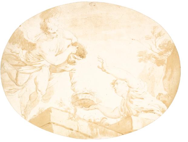| THREE FIGURES SEEN FROM BELOW, POSSIBLY A DESIGN FOR A CEILING | |