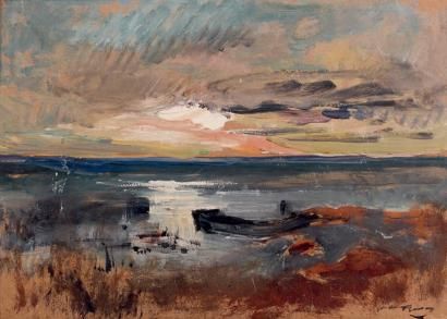 Barque amarrée au soleil couchant