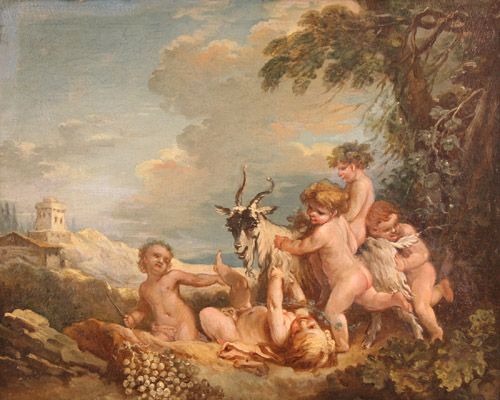 | Five Putti playing with a Goat within a Classical Landscape | |