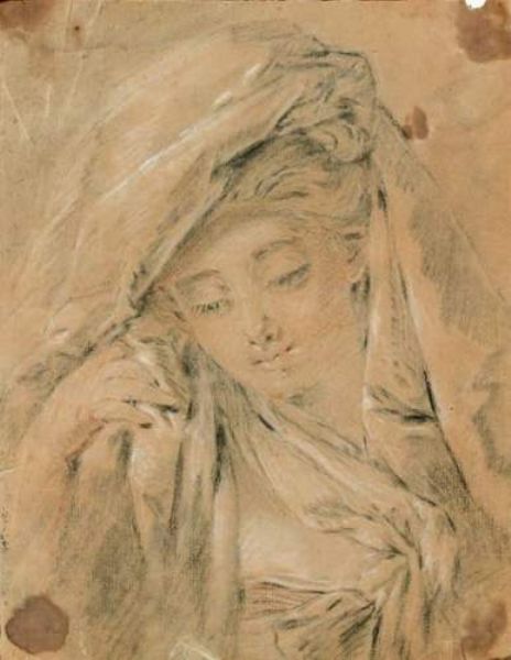 Étude de femme en buste, la tête dans un voile