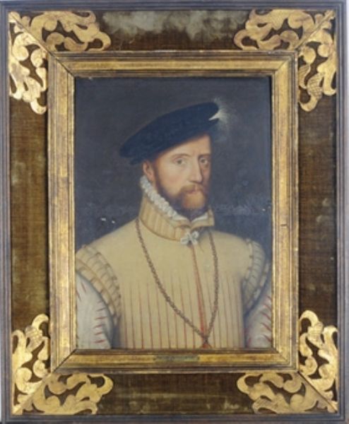 | Portrait of a gentleman, three-quarter length, wearing a striped overcoat | |
