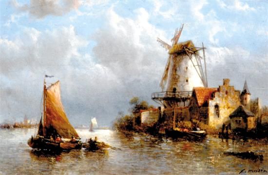 | A VIEW OF DUTCH ESTUARY WITH BOATS AND A WINDMILL | |