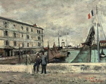 | Trois hommes assis sur le quai du Port de Honfleur | |