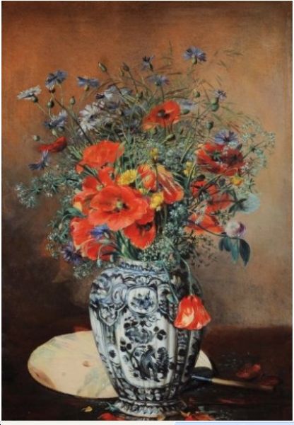 Fleurs des champs dans un vase de delft