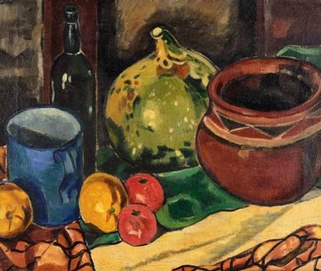 | Still Life with an African Pot, Blue Mug and Fruit | |
