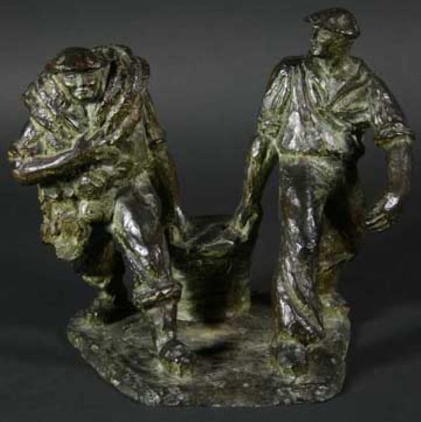 | A Bronze Figure Group of two fishermen carrying a basket of catch between them | |