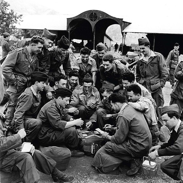 | Guerre d'Algérie, reportage en zone opérationnelle dans la région de Tlemcen. Des soldats disputent une partie de belote. Juin 1 | |