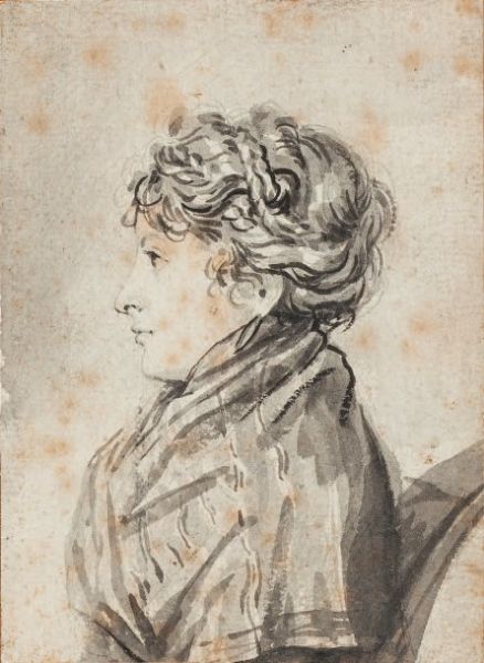 | Portrait de madame Bazin de profil avec un châle Lavis de gris et de noir | |