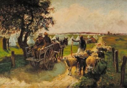 | Tirailleur conduisant son troupeau devant les soldats britanniques, Camp de Bruyères-St-Julien près de Rouen | |