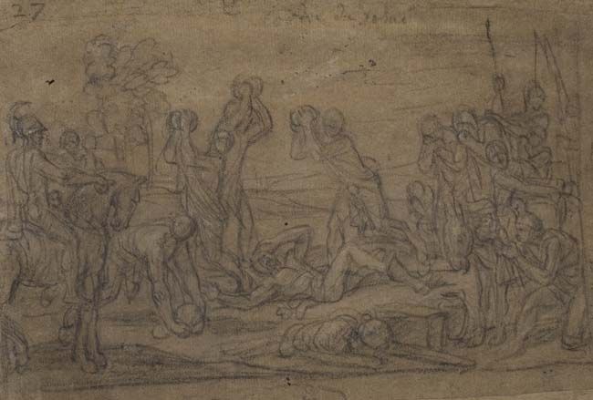| Chalk Black chalk with traces of white heightening on buff laid paper. | |