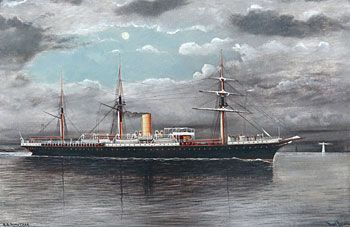 SS Rimutika Passing the Eddystone (Moonlight)