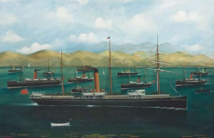 | S.S. Waiwera Leaving Wellington with the 2nd NZ Contingent for S. Africa, Jan 20th 1900. Escort of Steamers Returning to Port | |