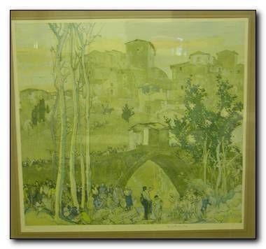 an Italian scene "Pelago" with baptism by a bridge and crowds of onlookers
