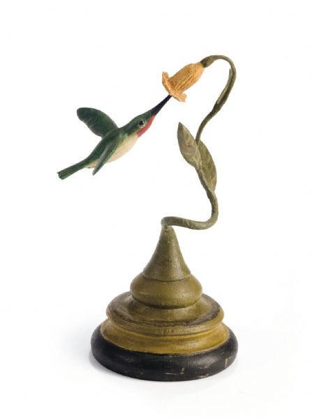 CARVED AND PAINTED RUBY THROATED HUMMINGBIRD