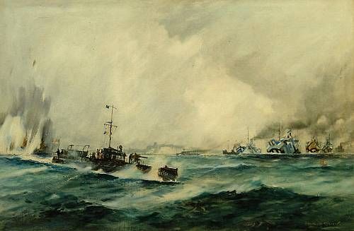 A steam battle ship at sea