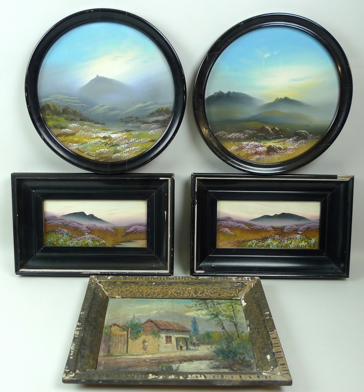 | a pair of circular watercolours of moorland with game birds in flight, | |
