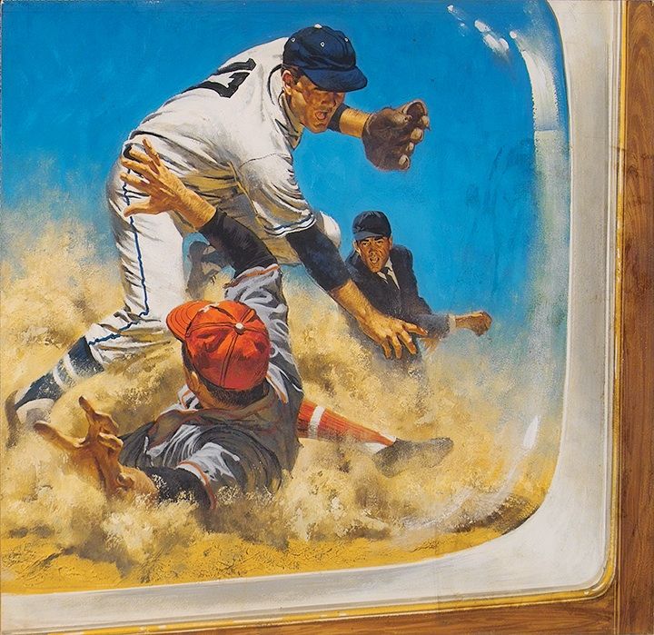 Baseball play as seen on TV.