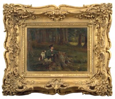 A Sportsman and His Dog in a Woodland Clearing