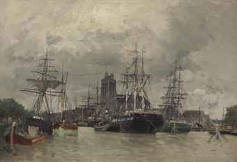Dordrecht Harbor with Shipping and Cathedral