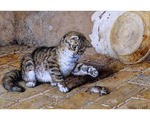 | The Christmas Basket three kittens, with a companion of a cat and mouse, a pair | |