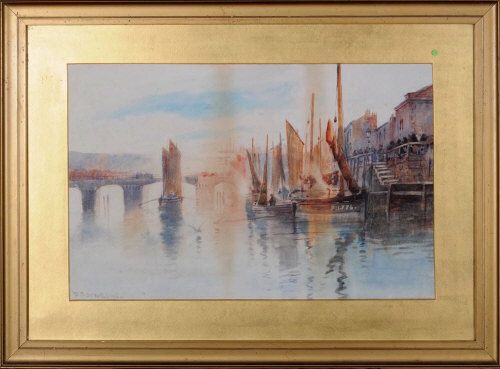 FISHING BOATS IN A HARBOUR, POSSIBLY WHITBY