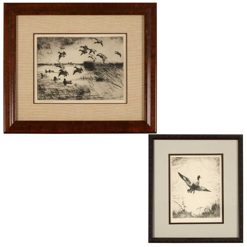 Two works: Flock of landing ducks and ''Shoveller Drake''