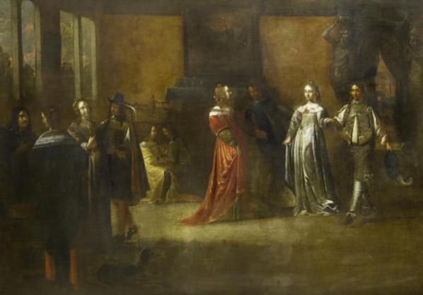 Elegant figures merrymaking in an interior