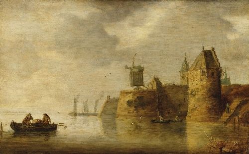 FLUSSMÜNDUNG MIT WINDMÜHLE UND FISCHERBOOTEN