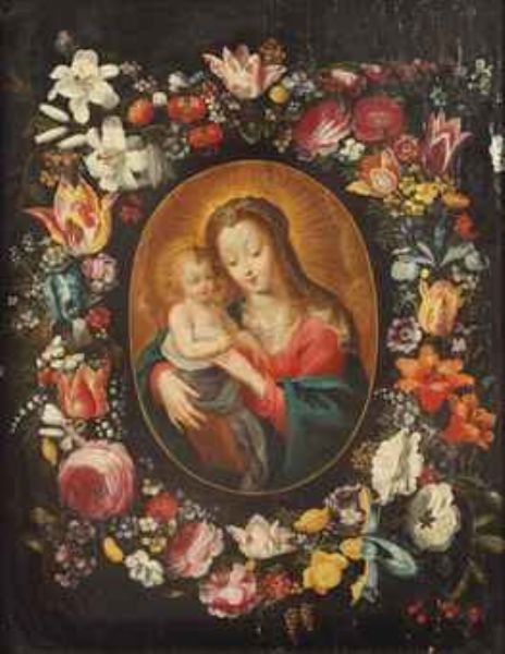 | The Virgin and Child in a feigned cartouche, surrounded by a garland of flowers | |