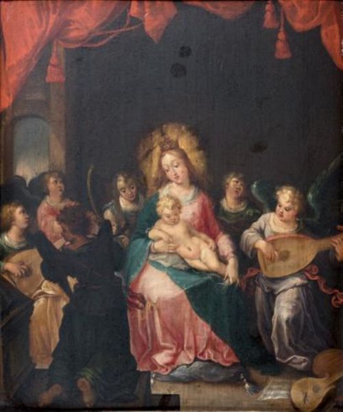| La Vierge et l'Enfant Jésus entourés d'anges musiciens | |