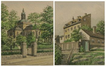 Motiv från Polhemsgatan och Kungsholms kyrka