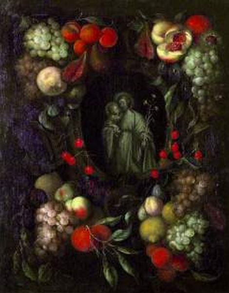 St Joseph et l'Enfant Jésus dans une guirlande de fruits