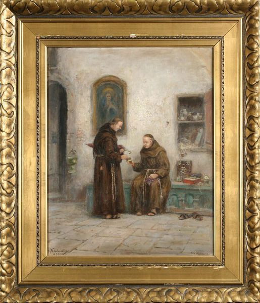Klosterinteriör med munkar