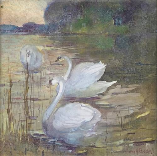 Three Swans by a Lake