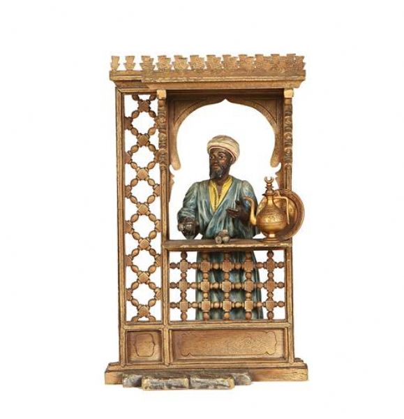 A cold painted bronze model of an Arab coffee seller