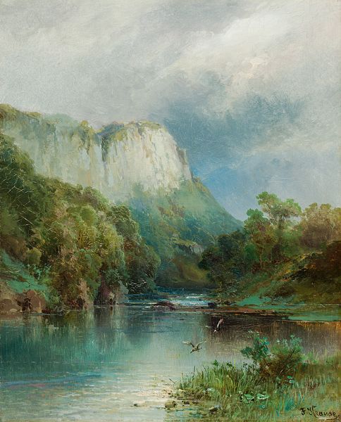 Meilock Glen and pond. Schottland unter Gewitterhimmel.