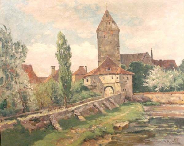 depicting a Continental village landscape