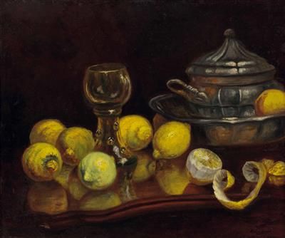 Stillleben mit Zitronen, Glas und Terrine
