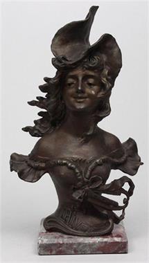 Jugendstil-Mädchenbüste "L'HIVER", so auf Rocaillensockel betitelt