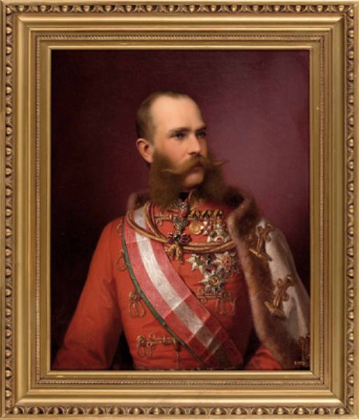 | Brustbild von Kaiser Franz Josef in ungarischem Königsornat im Jahr 1867 | |