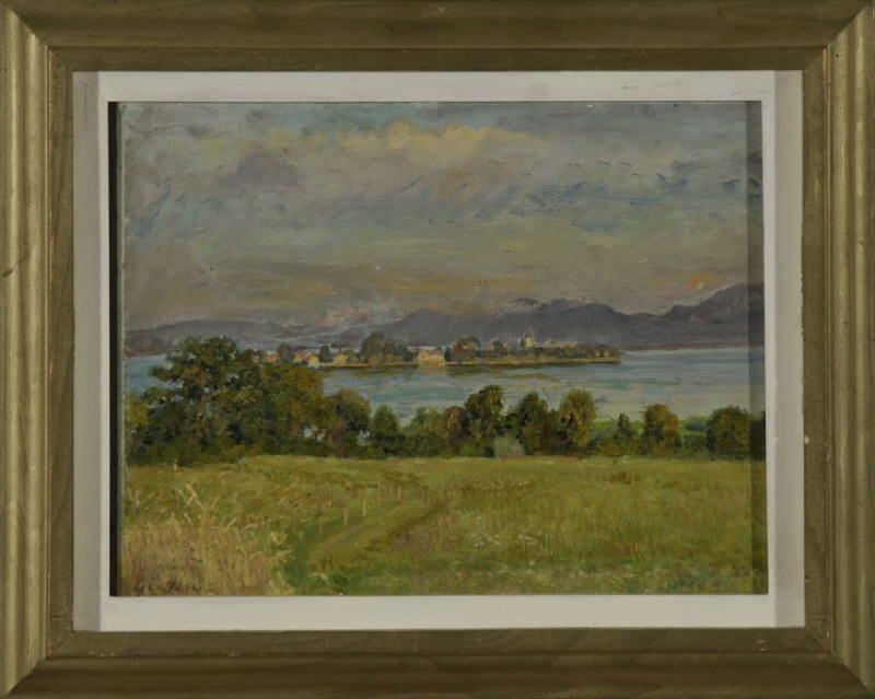 Chiemseelandschaft mit Blick auf die Fraueninsel an einem Sommertag