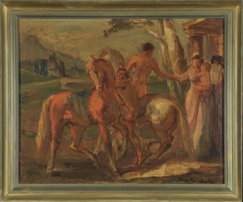 ei junge Männer zu Pferd nehmen Abschied von Zuhause