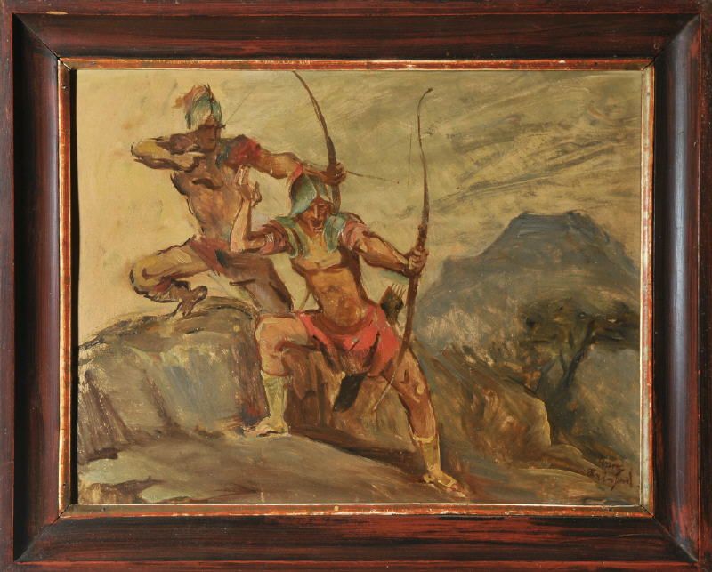 Zwei Bogenschützen im Gebirge gehen zum Angriff über