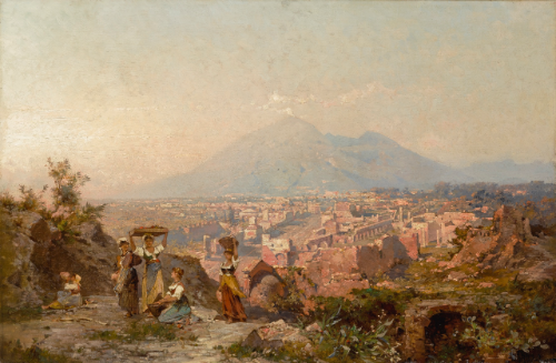 | MAIDENS ON A HILL OVERLOOKING POMPEII, VESUVIUS BEYOND | |