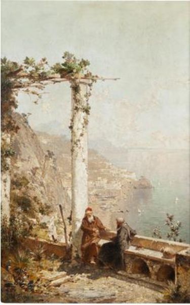 Monks on a terrace, Amalfi
