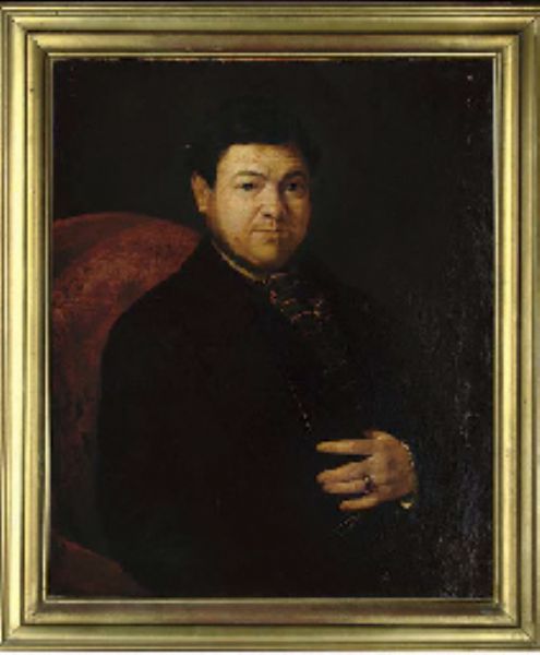 | Portrait of a gentleman, seated half-length, wearing a black overcoat and a red striped cravat | |