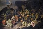 | A STILL LIFE WITH GRAPES, WATERMELON, PEACHES, OPEN POMEGRANATES AND FIGS | |