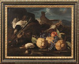 | NATURA MORTA CON CEDRI E CACCIAGIONE IN UN PAESAGGIO | |